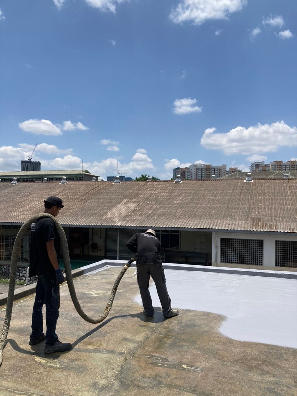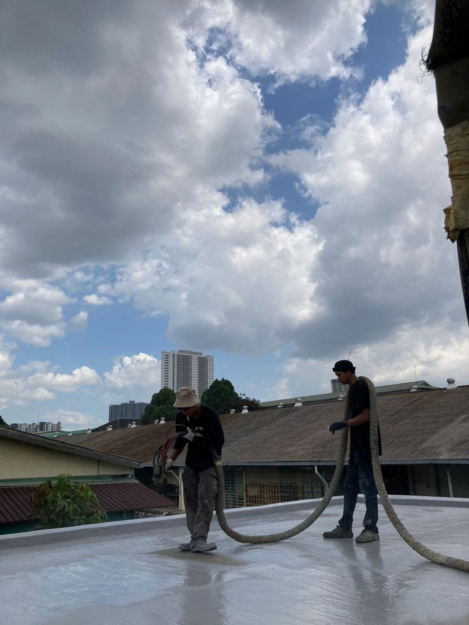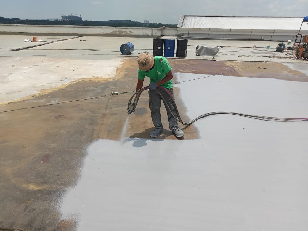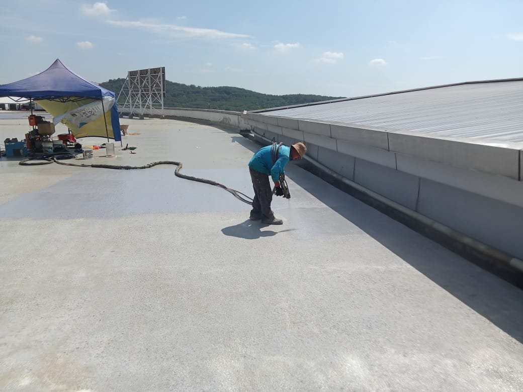Kerja-Kerja Polyurea Waterproofing Spray Paint RC Flatroof Majlis Pembandaran Sepang
