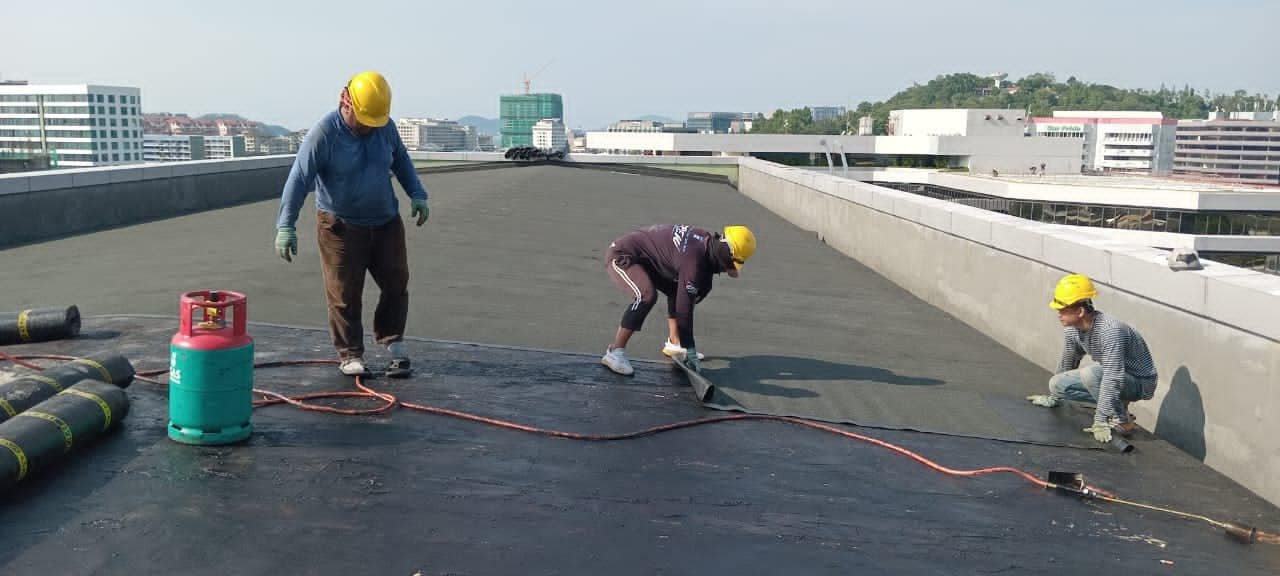 Torch on membrane method is widely regarded as one of the most popularly reliable method for waterproofing contractors in Malaysia as it is harmless to the environment and highly impermeable to water. Bitumen waterproofing membrane remain as favorite waterproofing material simply for the reason that it is effective and durable, especially for the hot country like Malaysia.